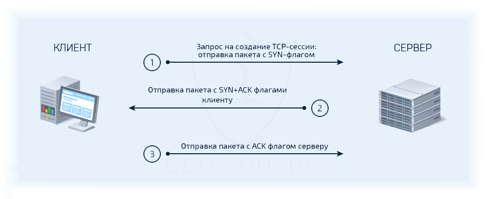 SYN-RECEIVEDполучает сегмент с флагом ACK, то он переходит в состояниеESTABLISHED. В противном случае после тайм-аута он закрывает сокет и переходит в состояниеCLOSED. Процесс называется «трёхэтапным рукопожатием» (англ. three way handshake), так как несмотря на то что возможен процесс установления соединения с использованием четырёх сегментов (SYN в сторону сервера, ACK в сторону клиента, SYN в сторону клиента, ACK в сторону сервера), на практике для экономии времени используется три сегмента.